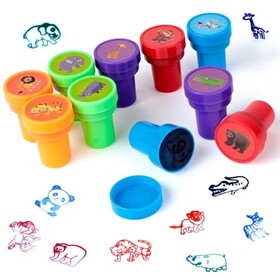 Romon 10 Stück Stempelset Tiere, Stempel Kinder, Niedliche Spielzeugstempel aus Plastik, Rund, Mehrfarbig, für Klassenzimmer Be
