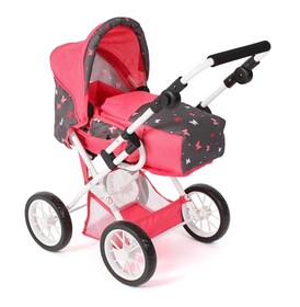 Bayer Chic 2000® 3in1 Kombi Puppenwagen Leni – Butterfly Koralle - faltbar, höhenverstellbarer Griff 43-67 cm, Tragetasche – Pu