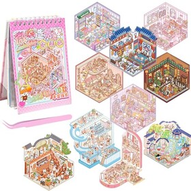 lomdung 10 Sets 3D House Stickers, Miniatur Haus Sticker 3D mit Pinzette, DIY Cozy Little Home House Scene Sticker Book, Fun DI