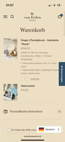 Finger-/Tierabdruck - Halskette "Rund" Large (16mm) einseitig, vorderseitig Silber + 18 Karat Vergoldung + Abdruckset