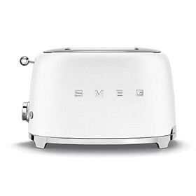 Smeg, 2x2 TSF01WHMEU -Toaster, 2 Schlitze für 2 Scheiben, 6 Vergoldungsniveaus, Heizfunktion, Abtau- und Bagel- Funktion, Samme