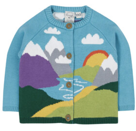 Reva Strickjacke "Blue/Mountain Scene" von Frugi