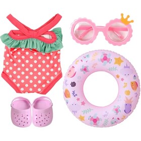 4 Stück Baby Schwimmset,Schwimmset für Puppen,mit Schwimmring Sonnenbrille Badeanzug und Clogs,Rosa Baby Zubehör für 43 cm Pupp