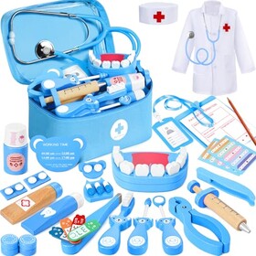 Ophy Arztkoffer Kinder ab 3 Jahre, 40-TLG. Holzspielzeug Doktorkoffer für Jungen & Mädchen, Zahnarzt Spielzeug Kinder, Rollensp