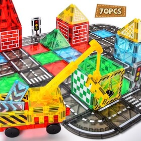 BuzzoXerex Magnetische Bausteine Stadtstraßen Set, 70 Magnetische Fliesen Straßenset, Magnetbausteine Set mit Ausfahrbarem Magn