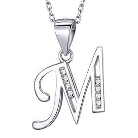 MASADA 925 Silber Buchstaben-Halskette - Initialen-Anhänger mit Zirkonia-Steinen - Buchstabe M - 46 cm Kette mit Samtbeutel