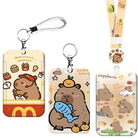LaresDay Capybara 3-in-1 Ausweishalter Set für U-Bahn/Fahrkarten mit Schlüsselanhänger, Verstellbarer Halskette & Lederband - C