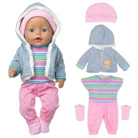 Kisvic Puppenkleidung für Baby Puppen, Baby Kleidung 36cm-43cm mit Mantel Bluse Hosen Hut und Socken, Geschenke für Mädchen