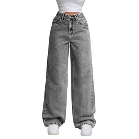 Generisch Jeanshose Damen Wide Leg Hose Baggy Jeans Straight Jeanshosen High Waist Palazzo Hose Weites Bein Stoffhose Hosenanzu