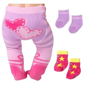 Xerteam 1 Strumpfhosen mit Rosa Herzmuster 2 Puppensocken für 33-43cm Puppen, Süße Baby Puppen Socken Set für 14-18 Inch, 3 Far