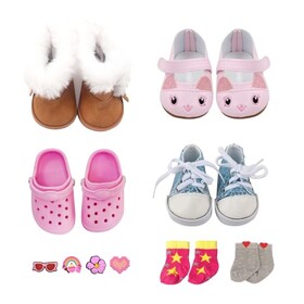 Puppenzubehör Set,43CM Puppenzubehör mit 4X Puppenschuhe & 2X Puppensocken, Puppe Zubehör für Baby Puppen, Geschenk für Mädchen