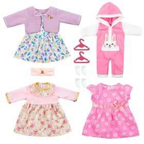 WanderGo Baby Puppen Puppenkleidung 35-43 cm, 5-teiliges Outfit mit Kleider, Jacken, Schuhe, Haarband, Kleiderbügel Traumhafter