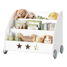 WOLTU KR002 Kinderregal Bücherregal für Kinder, Spielzeugregal mit Räder 3 Regale , Holz Standregal Kinderzimmerregal Mehrzweck