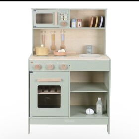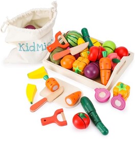 KidMigo Kinderküche Zubehör, Kinderküche Holz, 19 Artikel, 35 Stück Schneidespielzeug mit Serviertablett, Küchenspielzeug mit L