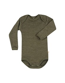 Dilling Langarmbody aus Merinowolle für Babys Dunkelgrün meliert 86