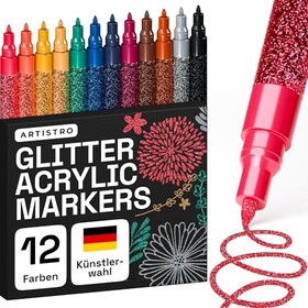 Artistro 12 Glitzer Filzstifte Zeichenset, Stifte zum Bemalen von Steinen, Felsmalerei, Keramik, Glas, Holz, Stoff, Scrapbookin