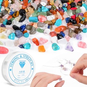 RUBY 420 Stück Bunte Edelstein Perlen mit Loch Naturstein Chips zum Auffädeln – DIY Schmuck Bastelset für Armbänder, Halsketten