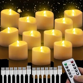 Led Kerzen Wiederaufladbar, 12 Stücke Teelichter mit Timerfunktion, Led Kerzen Flackernde Flamme mit Fernbedienung für Weihnach