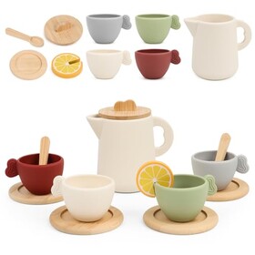 Encuryna Halloween 13 Stück Teeservice Kinder, Teeservice Silikon Holz Kinderküche Zubehör Teeparty Rollenspiele Spielküche Zub
