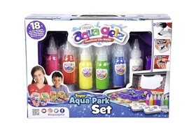 Aqua Gelz Wasser Park Spielset, 6 Flaschen Farbgel, je 30ml, 2 Formen mit je 3 Charakteren, 6X Wasserzusatz, Set zum Aufklappen