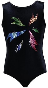 GymStern Gymnastikanzug Sterne Lycra Mädchen Turnanzug Kurzarm Kinder Turnbody kurzärmlich, Größe:158/164, Farbe:Samt in Schwar