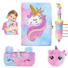 VFANDV Einhorn Tagebuch mit Schloss, Einhorn Notizbuch Set mit Gelschreiber, 2 x Einhorn Schreibwaren Tasche, Zeichnen Notizblo