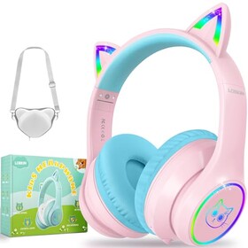 LOBKIN Kinder Kopfhörer mit Tasche, Kopfhörer Kabellos und Kabel Bluetooth für Kinder, Faltbar Einstellbar Over Ear Kopfhörer K