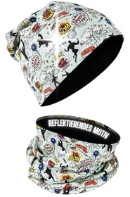 HECKBO 360° Reflektor Kinder Mütze & Loop Schal Set - Superheld - 2-8 Jahre - 95% Baumwolle - weiches & pflegeleichtes Stretch-