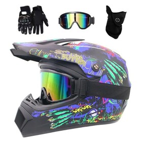 Jugend Kinder MTB Motocross Helm Satz, mit Handschuhe Brille Maske, Unisex Integral ATV Offroad Straße Motorrad Helme, Bergab E