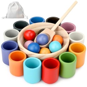 Royouzi Montessori Holzspielzeug, Montessori Ball Sortierspiel, Holz Sortier Stapelspielzeug, Montessori-Spielzeug mit 12 Bälle