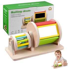 Montessori Spinning Drum, Montessori Spielzeug Kinder, Rainbow Musik Spiegel Trommel für Säugling ab 1 2 3 Jahr, Holzspielzeug