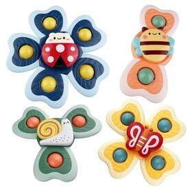 Sudnsadaks 4 Stück Saugnapf Spielzeug Kinder, Badewannenspielzeug, Sensorik Spielzeug für Baby, Saugnapf Drehspielzeug, Tisch S