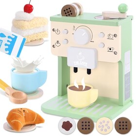 VBACALA Kinderküche Set Kaffeemaschine Kinder Holz mit Sound & Tasten,Spielküche Zubehör Teeservice,Kaffeemühle,Stoffkuchen & C