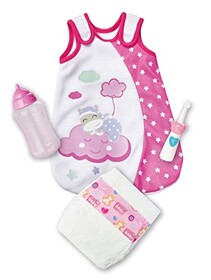 Simba 105400001 - Laura Gute Nacht Babyzubehör, Schlafsack, Zahnbürste, Windel, Flasche, für 30-38cm Puppen, 4 Teile, Puppenkle