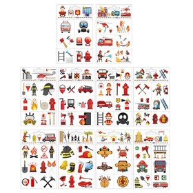 Tattoo Kinder Feuerwehr Set - 10 Bögen Hautfreundliche Temporäre Tattoos für Kinder Jungen - Feuerwehrmann, Feuerwehrauto & Meh