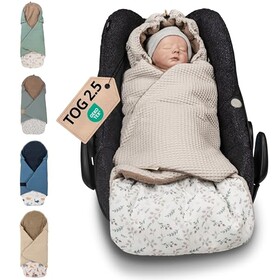 ULLENBOOM Einschlagdecke Babyschale, Ideal für Herbst und Winter, 100% OEKO-TEX Materialien, Floral Sand - Babydecke für Kinde