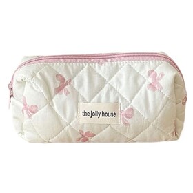 CRGANGZY Kosmetiktasche mit niedlicher Schleife und Reißverschluss, Make-up-Organizer, Aufbewahrungstasche, Baumwolle, gesteppt