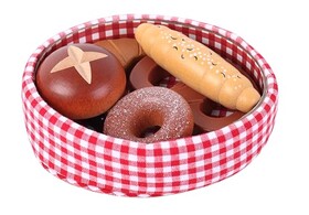tanner DER KLEINE KAUFMANN TANNER Deco - Backwaren im Baumwollkorb, mit Backartikeln aus Holz, Zubehör für Kaufmannsladen, lebe