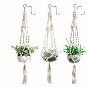 3 x Pflanzenaufhänger, Makramee Blumenampel, hängend Blumentopf mit Baumwollseil, Blumenhänger Pflanzhänger für Innen Außen Dec