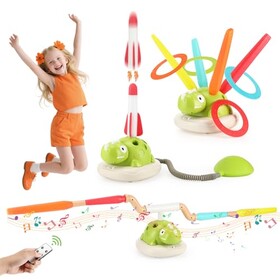 Pavlleen 3 in 1 Outdoor Spiele für Kinder, Ringwurfspiel, Raketen Spielzeug, Seilspringmaschine mit 4 Geschwindigkeiten Fernste