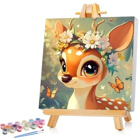 Reh Malen Nach Zahlen Kinder Mit Rahmen Deer Paint by Numbers für Kind Cute Tier Ölgemälde Kinder ab 5 6 7 8 9 Jahre für Haus D