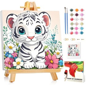 Malen Nach Zahlen Kinder mit Rahmen, Tiger Malen nach zahlen kinder ab 5 6 7 8 9 10 Jahre, Malset mit Rahmen, Pinsel und Acrylf