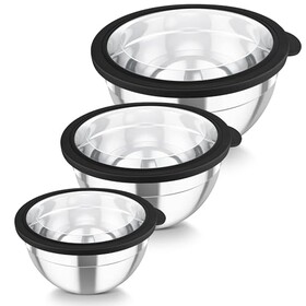 TEAMFAR Rührschüssel Set, 3 Stück Edelstahl Schüssel mit Transparenter Luftdichtem Deckel, Stapelbar Schüsselset, 4,5L/3L/1,5L,