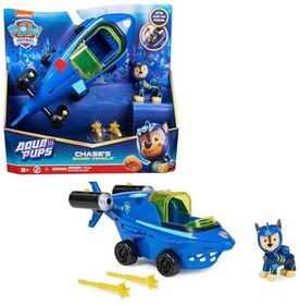 PAW Patrol, Aqua Pups – Whale Patroller, Teamfahrzeug mit Basis Fahrzeug von Chase und Welpenfigur, Abschussvorrichtung für Bas