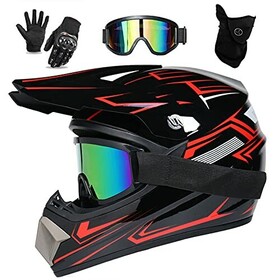 UIGJIOG Downhill Motorradhelm Kinder, Helm Set Herren ATV Motorradhelm D.O.T Zertifizierter Helm Mit Brille Handschuhe, Integra