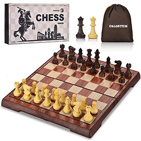 OkidSTEM Magnetisch Schachspiel Brettspiel Set mit Klappbrett Schach Reisespiele für Kinder und Erwachsene