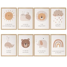 HappyArts® | Kinderzimmer Bild 8er Set A4 Affirmationen Poster Deko Mädchen Junge Babyzimmer | Affirmationsposter Affirmationen