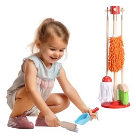 Navaris Putzset für Kinder - Reinigungsspielzeug - Kinder Besen - Kinder Besen Set - Kehrset Kinder - Kinder Wischmop - Montess