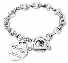 Stray Edelstahl Armband, Stray Unisex Silber Bracelet, Herz Anhänger Armbänder mit 1 SKZ 3D Aufkleber und 2 SKZ Photocard, Kpop