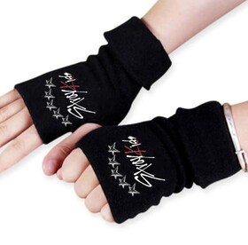 1 Paar Stray Handschuhe Fingerlos, Stray Strickhandschuhe, Kpop Schwarz Winter Gloves mit 1 SKZ 3D Aufkleber und 2 SKZ Photocar
